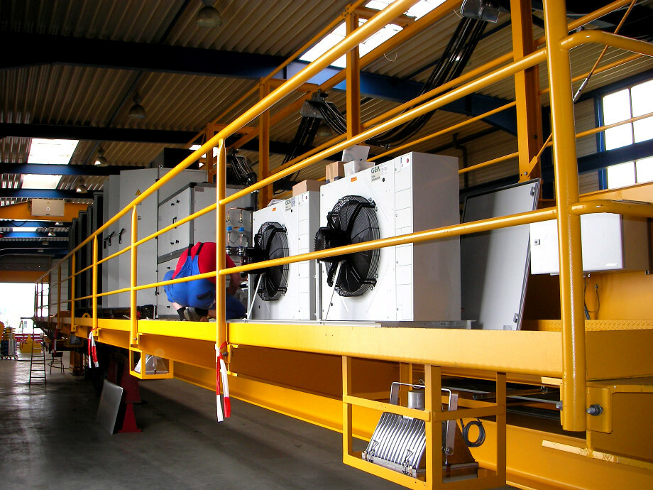 Mehrere Kräne für Papierfabriken, Stahlwerke und andere Anwendungen mit hohen Umgebungstemperaturen weit über 60 °C sollten daher mit individuellen Kühlanlagen für die Schaltschränke ausgerüstet werden.